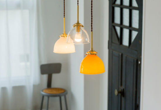 株式会社村上工作所のペンダントライトは、ガラスと真鍮灯具を基調としたデザインが特徴です。 ガラスは耐久性に優れ、長く使用できるため、実用性と美しさを兼ね備えています。 一方、真鍮は使用するほどに独特の色合いに変化し、アンティークな雰囲気を醸し出します。