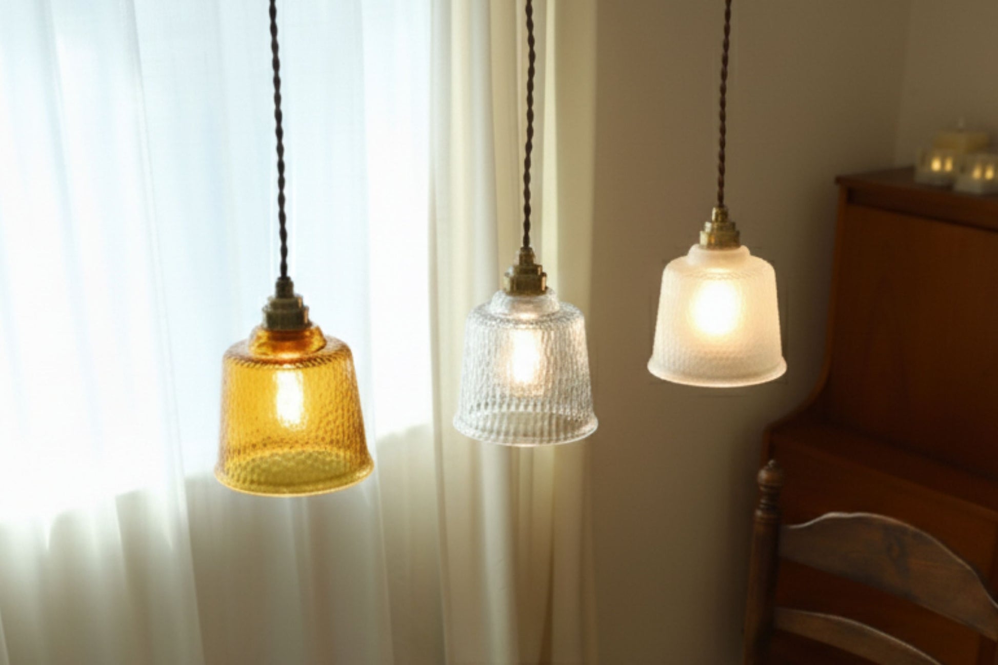 ランダムな凹凸が特徴的なガラスシェードのペンダントライト